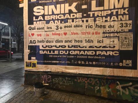 Artiviste Collages sauvages 7 janvier 2026 Charlotte A. Laisser un commentaire Effectués avec le collectif Indignons-Nous Bordeaux entre novembre et décembre 2025. Partager : Cliquer pour partager sur X(ouvre dans une nouvelle fenêtre) X Cliquez pour partager sur Facebook(ouvre dans une nouvelle fenêtre) Facebook J’aime chargement… Similaire