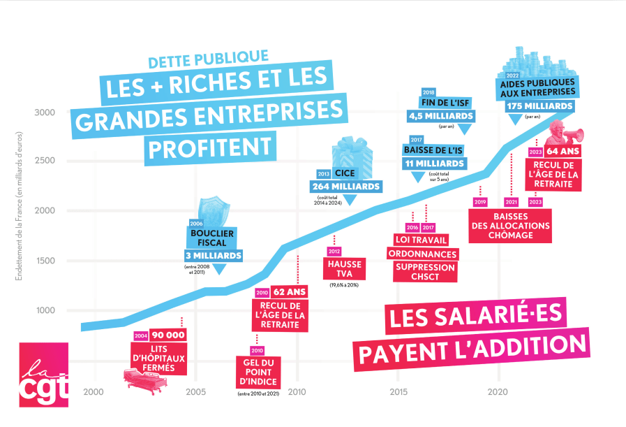 Ce n’est pas un problème de dépense (elle n’augmente pas malgré l’augmentation de la masse salariale) mais un problème de recettes : cadeaux fiscaux, faible imposition sur les patrimoines et la capital, sur la valeur ajoutée, TVA qui n’est pas un impôt progressif pesant proportionnellement bien plus sur les ménages modestes que sur les autres catégories sociales, exonérations de cotisations patronales créant un déficit qui n’existait pas (voir proposition OXFAM).