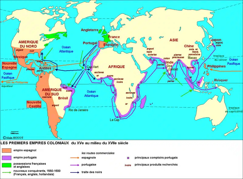 Ci-dessous les grands empires coloniaux du XVème au XVIIème siècle, puis en 1914 et en 1945 :